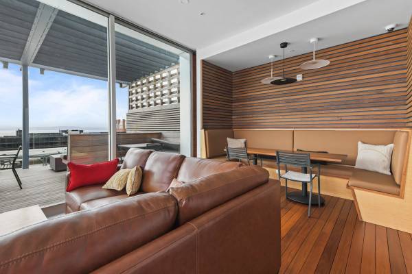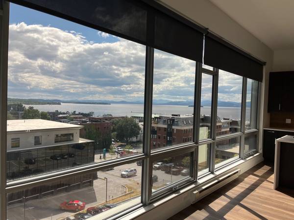 Building amenity's include a top floor community terrace featuring stunning views of the Adirondacks and lake Champlain. Terrace offers a fire pit, soft seating, bbq, pizza oven, and more. Bike storage, pet wash station and gym included.