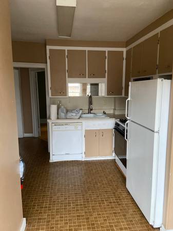 Features include one level floor plan w/ four bedrooms, one bath, living room, sun room, hardwood/vinyl floors, eat in kitchen, new dishwasher, new stack washer/dryer in unit, some basement storage and small yard. Rent includes two off street parking spaces (and resident street parking for small city permit fee), water/sewer, trash and snow removal.