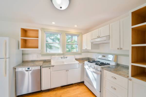 A beautiful, charming 2 bedroom located on the first floor of a centrally located building. The kitchen has been fully remodeled, complete with a vintage farm sink, granite countertops, new dishwasher, and new gas stove. The bathroom has also been restored with tile floor and custom shower. The original hardwood floors are spread throughout the sunny space.
