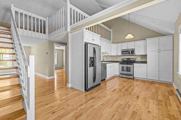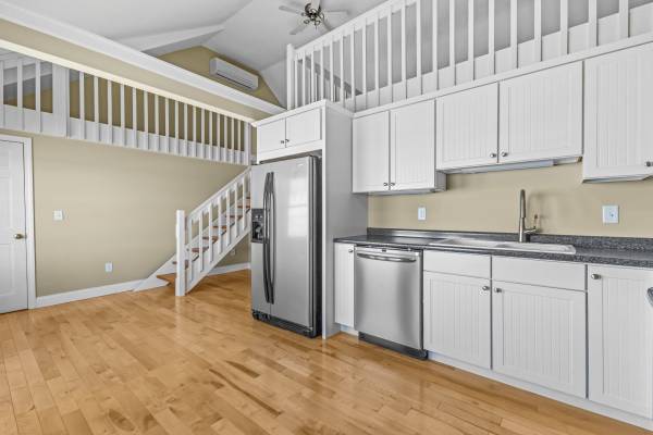 This bright and inviting unit features a spacious living room, a full kitchen with updated appliances, and comfortable sleeping areas in both the main bedroom and loft.