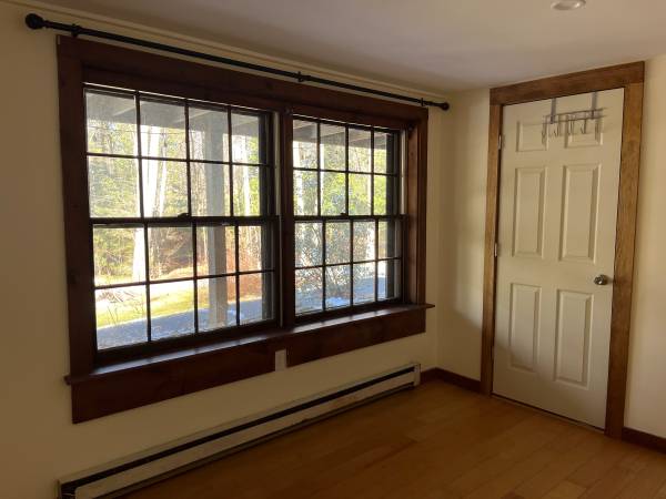 1 bedroom apartment available now for rent in Monkton, renovated and painted with updated lighting last winter. This is the downstairs unit in a log cabin on a quiet 2.2 acres, surrounded by private woods.