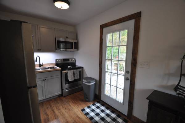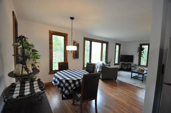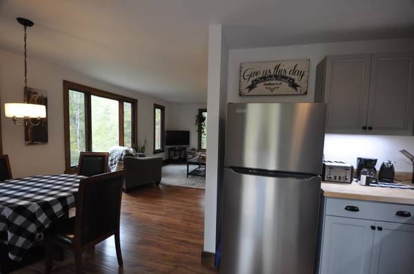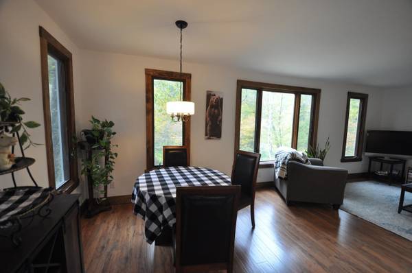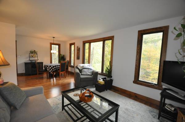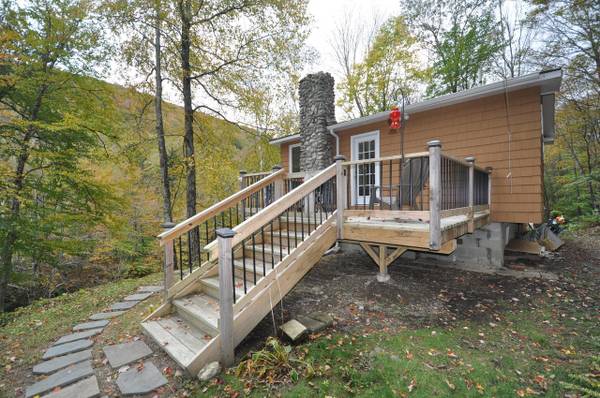 This charming Rupert home offers a tranquil escape with a newly renovated interior taken down to the studs. Enjoy the serene ambiance of a flowing brook across the street and mountain views. The property spans 1.7 acres, providing ample space for your outdoor desires. The interior boasts 1,057 SF, kitchen/living/dining, deck, master bedroom and full bath on the 1st floor. The finished lower level offers the flexibility of a 2nd bedroom/office space and a den with a Vermont Casting wood stove. Multiple sets of stairs and beautiful stone work, this home is your Vermont tree top getaway! Don't miss the opportunity to make this your secluded retreat.