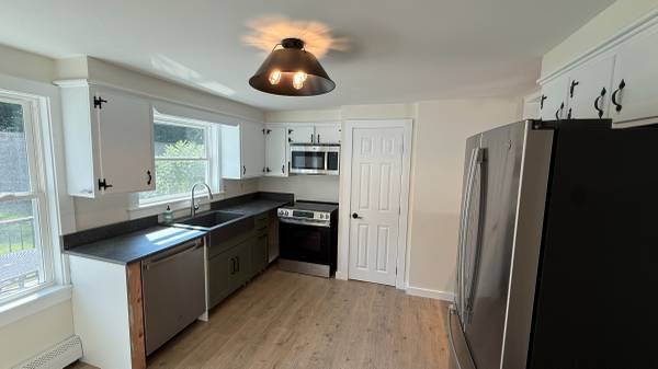Fully renovated 3 bedroom, 1 bathroom apartment in duplex in convenient location in Shelburne. Brand new windows, floors, appliances, toilet, fresh paint, etc!