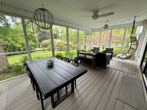 House is located on a .6 acre lot with an open floor plan, oversized 2-car garage, a 3-season screen porch and a 4-season sunroom.. Kitchen features stainless steel appliances, stone countertops and a large walk in pantry. A new energy efficient natural gas boiler provides heat and hot water and built in mini-split air conditioning units on the first and second floor keep things cool in the summer.