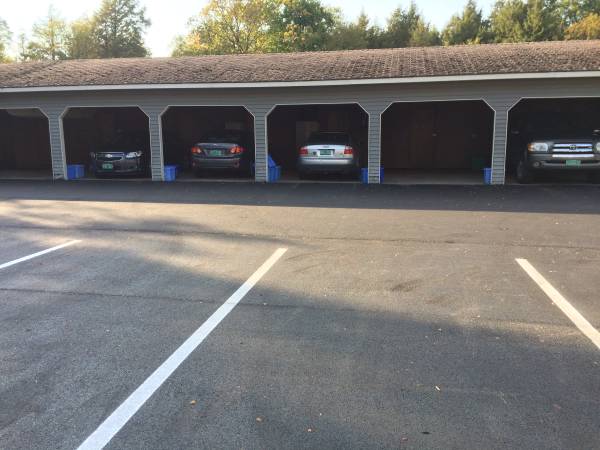 Covered carport and 1 reserved open parking spot. Covered and locked exterior storage available behind carport.