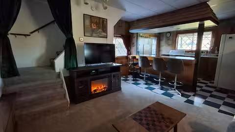 Appliances: Washer, dryer, stove refrigerator, Electric fireplace, microwave, Drip/k-cup coffee maker, toaster & electric can opener. TV is a 43" Roku.