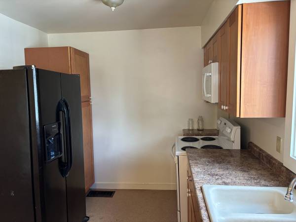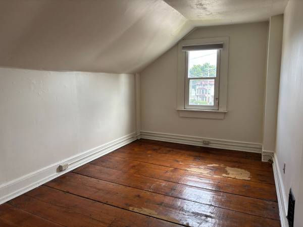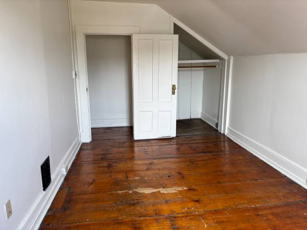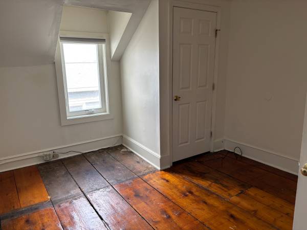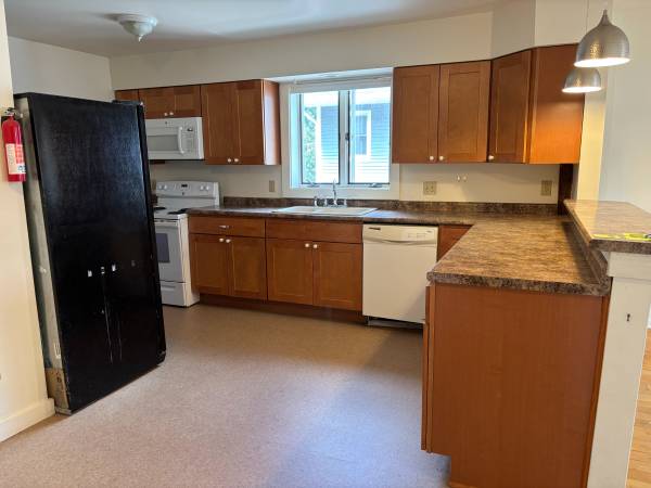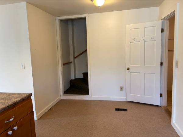 Quiet 4 bedroom apartment is an easy walk to downtown Winooski, UVM and Hospital. Recently renovated, this sturdy, early 1900's apartment features hardwood floors, free washer and dryer, dry basement storage, a good-sized kitchen with large fridge, dishwasher, updated cabinets and counter, and breakfast bar. There is a bedroom and full bath on the first floor, and three bedrooms and a 1/2 bath upstairs. A bus stop is just steps away, the busline runs right past the Medical Center, UVM, and straight into downtown Burlington. Off street private parking is provided onsite for 6 cars total (for 2 apartments), and it backs up to a small bit of forest running down to Riverside Ave above the Winooski River Salmon Hole. Winooski restaurants are a 5 minute walk.