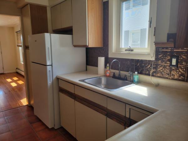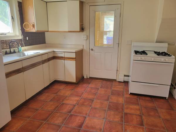 • Eat-in Kitchen is equipped with a refrigerator and a gas oven/range. Plenty of cupboard space!