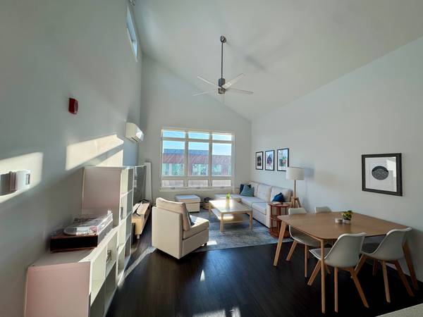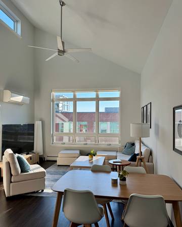 It is a modern, sky-lit 1-bedroom, 1-bathroom apartment on the top floor (no upstairs neighbors!) with a spacious den, vaulted ceiling living space, kitchen, and in-unit washer & dryer. Rent is $2,449 per month, and includes heat, hot/cold water, internet, and trash/recycling/compost. City Lights is pet-friendly and offers the following amenities as well: