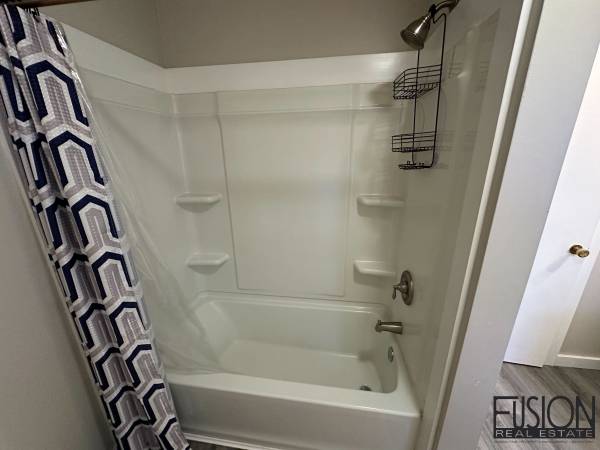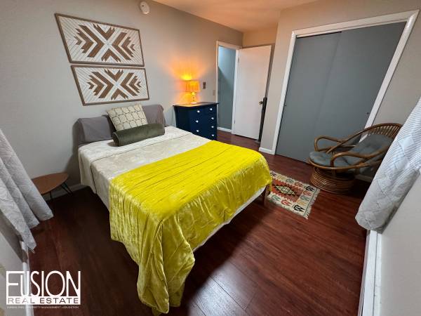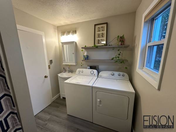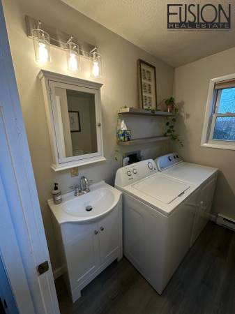 Top floor - Large bathroom with washer and dryer, larger bedroom overlooking fenced back yard.