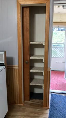 1 bedroom, 1 bath very open apartment with new living room carpet and kitchen floor. Very private. One off street parking space avail. No laundry facility. Comfortable, efficient gas heat. Large 3 season enclosed porch with swing and lots of storage. No pets, no smoking in apartment or on property. First and last months rent with $500 security deposit. Call show contact info