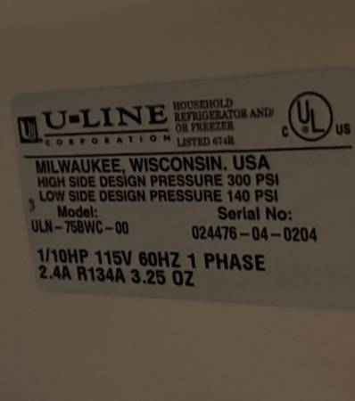 Wine Captain U-Line Wine Refrigerator. 60 bottle capacity. Three temperature zones maintained simultaneously. Has been in my basement unused for 10 years, works well. I had it serviced by Bouchard Pierce before storage. $450 cash and transport from my house.