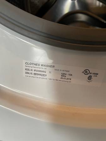 I have for sale a very nice Samsung front load washer that we bought new 5 years ago for $1200. Over the last few months, it has become noisy in the spin cycle and we have been told it needs a new rear bearing.. instead of fixing it we purchased a new one. It is in excellent condition and comes with all the manuals and receipts but will need a new bearing in the near future. If is something you can fix It would be a great machine for someone.. I know the bearing is only $20 but it’s quite a bit of work to change