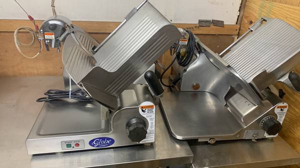 Several Hobart mixers 20,30,40qts Several Globe Commercial slices All refurbished and ready to go to work Mixer prices start at $1200 Slicers start at $850 Trade ins welcomed 30day Warranty Delivery...