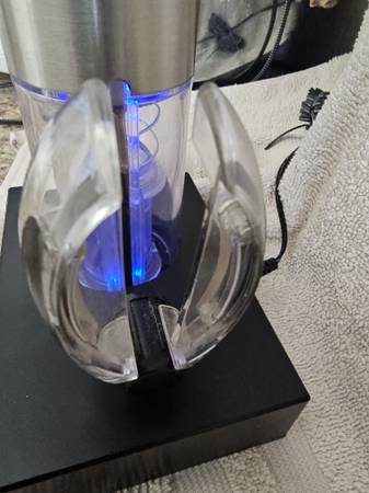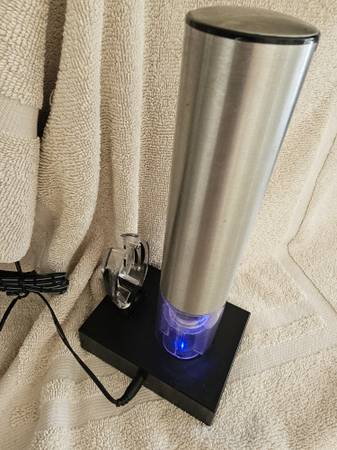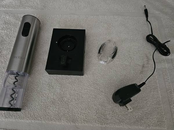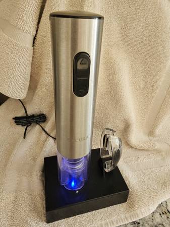 Enjoy the effortless cork removal from your wine bottle. The device comes with a recharging stand that also accomodates the foil cutter.