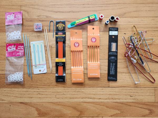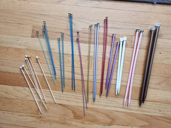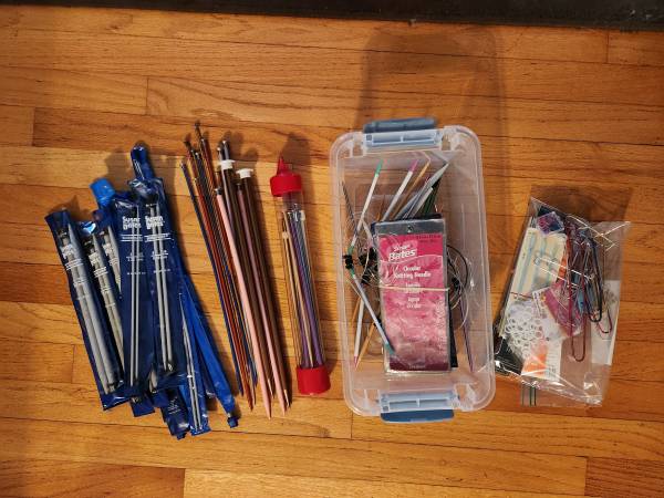 44 sets of Knitting Needles 20 Circular Needles Stitch holders, sets of double pointed needles, row counters, plastic needles, plastic rings