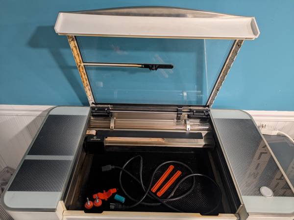Glowforge basic model works great also comes with exhaust fan and vents. Has all its parts and tools. Have any questions feel free to ask.