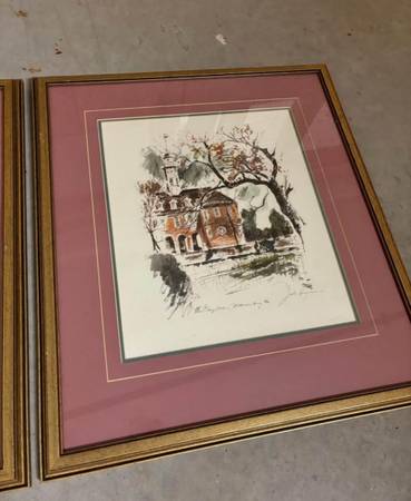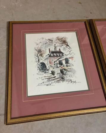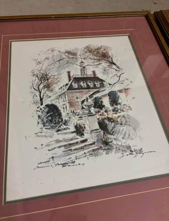 John Haymson Williamsburg Virginia Art Set | Governor's Palace & Capitol | Vintage Framed Watercolor Lithographs
