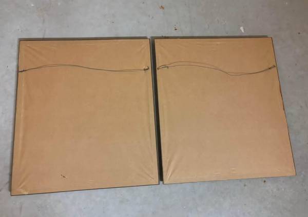 Both pieces are professionally housed in matching gold-tone frames. They feature a distinctive double-matting style with a rose/mauve outer mat and a hunter green inner border, which highlights the foliage and brick tones in the artwork. The backs are fully sealed with dust covers and wire hangers, making them ready to hang immediately.