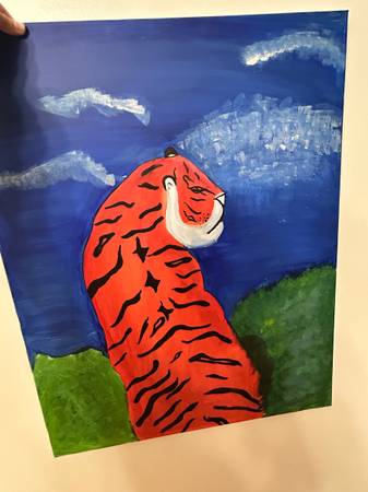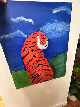 This is a tiger painting I did last month, the canvas costed $25 and the paint I used was $50. This painting took 4 days to finish it’s really big. I’ve been painting for a few years and I’m really proud of this and I’m ready to sell! You can offer how much you’re willing to pay for it OBO