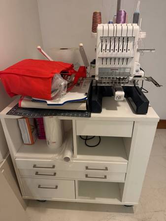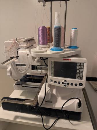 This bundle includes the model MB-7e machine, storage desk, oodles of thread, accessories and fabrics. I will not ship or deliver, easy pickup from basement, price is firm for the entire bundle. No payment plans/no holds. It was very very lightly used and requires rethreading. Heavy! Bring help to load!