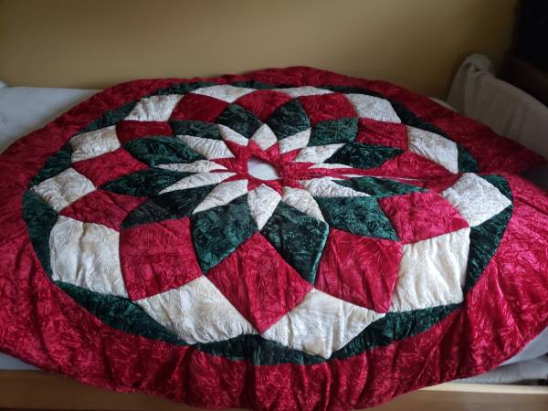 Lovely Christmas tree skirt, 55" in diameter. Purchased from the Christmas Loft in Shelburne.