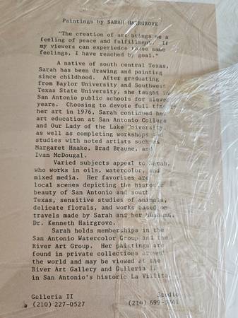 Painted by Sarah Hairgrove, this 16" x 10" watercolor is signed, matted (24" x 18") and in original shrink wrap.