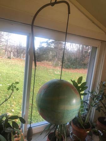 This 12” diameter globe is hanging ,balanced with weights, Very unique $32.oo Veronika 279-306three/ text or call only