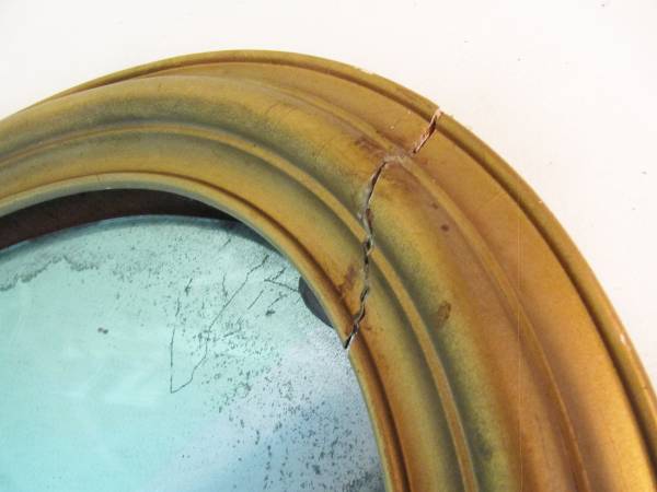 This is a beautiful vintage oval mirror up for sale. Measures about 37" x 23" with frame. It needs restoration but is all there. Wood backing for mirrors in place. Frame joints are loose and need to be re-glued. Great project if you are handy and will make a gorgeous end product. I just have zero time to get into it at the moment. What you see is what you get.