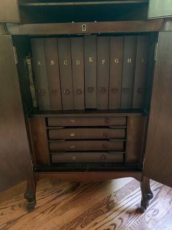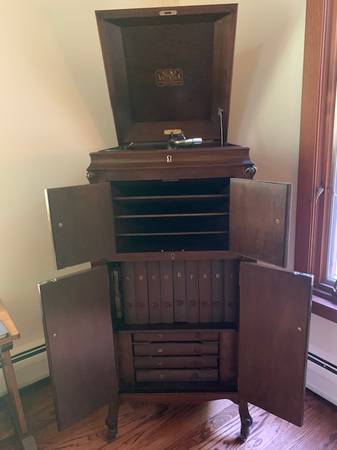 Lovely vintage 1904 Victrola Console, completely original, spring crank, beautiful cabinetry, full original album set, many old records including Cab Calloway, Al Jolson, Gene Autry, Alma Gluck, Jascha Heifetz and many more.