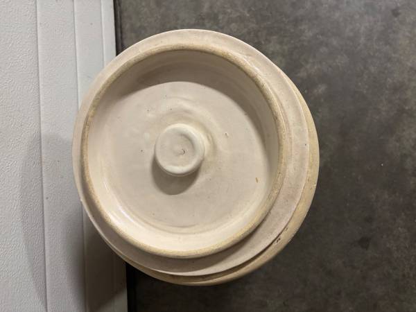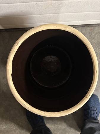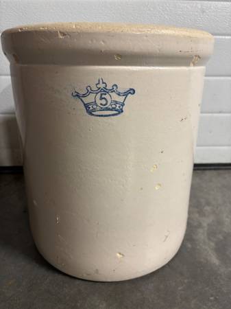 Nice 5 gallon Blue crown crock with lid. No cracks, few small chips.