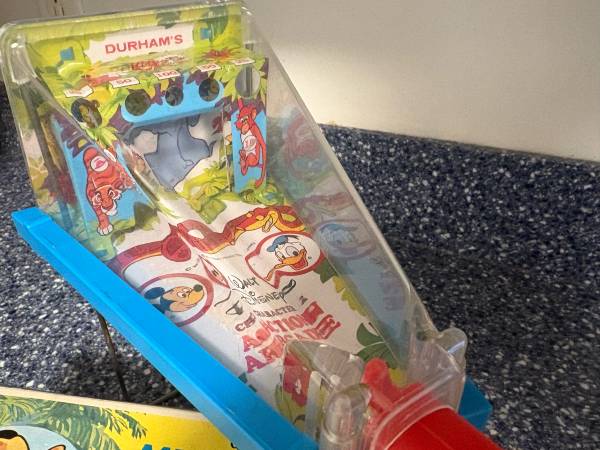 Vintage Disney Mickey Mouse arcade game with box The game itself does work and in great shape. It’s missing the back leg piece but it’s only bent metal pole. It does work with out it The box is in...