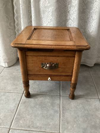 Antique oak commode, in excellent condition 17.75” tall X 18” d X 18” w