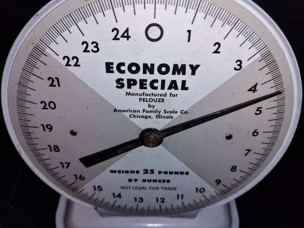 The other is a smaller kitchen scale from American Family Scale Co in Chicago. It is an Economy Special Manufactured for Pelouze (another scale manufacturer). It has a 2 lb capacity in ounces.