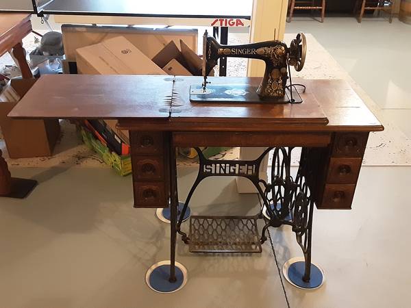 Rare Singer antique early 1900 vintage wooden deck sewing machine. 7 drawers. In good condition. #G8930255. $270.