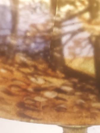 It is cracked and a few chips but what a rare stunning piece depicting horses working the crops on a Homestead. Signed. Please examine the photos carefully and I will do my best to answer questions as they come in.