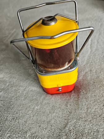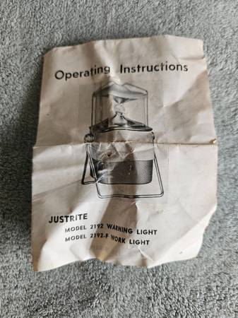 Vintage 2192 Justrite Lantern, red warning light railroad lamp manufactured in Chicago. Complete with operating instructions, original box and mimeographed Supplementary Instructions.