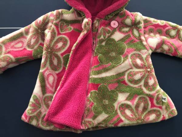 Girls Size 3T CORKY & COMPANY floral very thick double fleece coat with hood. Zipper up the front and large button by the neck. Adorable. Cross-Posted Can meet in Cambridge, Johnson, or...