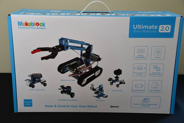 The Makeblock mBot Ultimate 2.0 is a 10-in-1 educational robot kit that can be built into 10 preset forms.