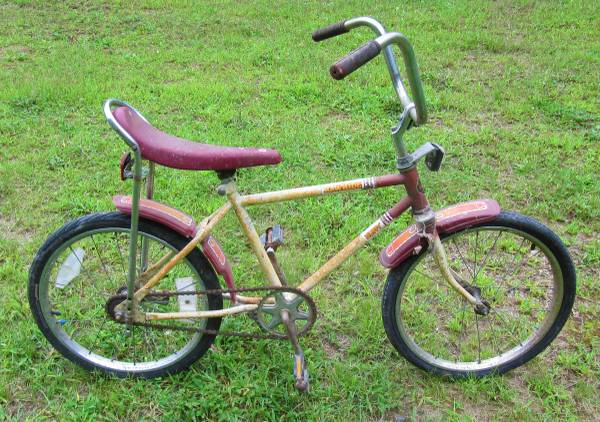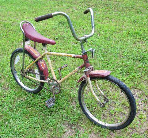 Vintage Huffy Rawhide muscle bike up for sale. About 15" from center of bottom bracket to top of seatpost tube. Bike is in average (sitting in the barn for 40 years) condition. Great restoration project. Pickup or local delivery for a reasonable fee.