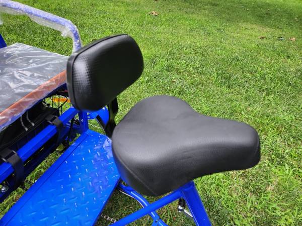Brand new! " RARE" 2 person ETRIKE, SMOOTH RIDING , 48 volt powerfull , hill climbing, 5 star motor " and 5 star 14 AH lithium ion long life battery. It has a cushy rear passenger seat. This ETRIKE also has a nice back rest on the front seat. This ETRIKE is rare and you will not be able to find another one like it anywhere online except for right here! And if and when you do find one like this , it will have a sluggish , slow , 36 volt electric motor system that will not even have the power to take you up a hill. Or come in pieces in a box and will need proper adjustments etc. This ETRIKE