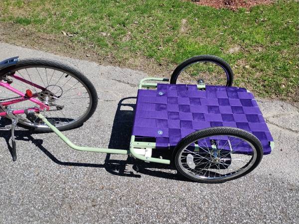 Your bike's new best friend: Utility trailer. New paint and webbing. Chain-stay clamp attachment style makes it easy to attach to most bicycles. Bring your bicycle and hitch up to a wonderful...