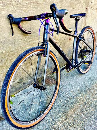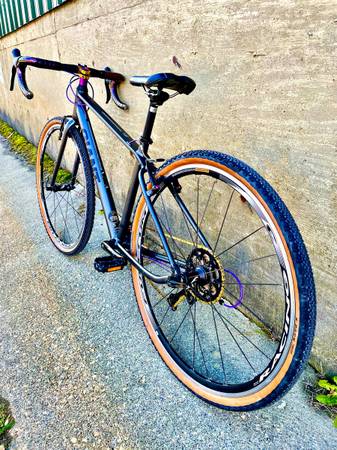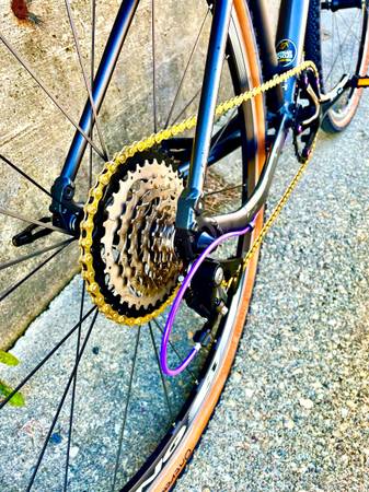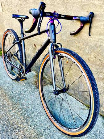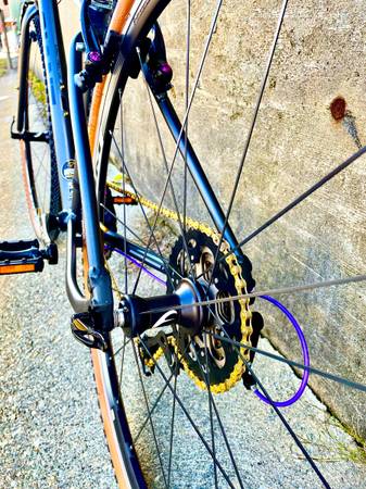 Small Giant Escape, aluminum frame with very low miles and hardly a scratch to be found. 1x8 drivetrain with new Sensah shifter/brake levers, new 40t narrow/wide chainring, new 11-40t cassette and a new chain. Upgraded Fulcrum wheelset with low miles, new 700x38c Ontrack gravel tires and new inner tubes. V-brakes w/new pads have excellent stopping power. New 42cm drop handlebars w/new wraps , new stem, new seat and all new cables/housings.