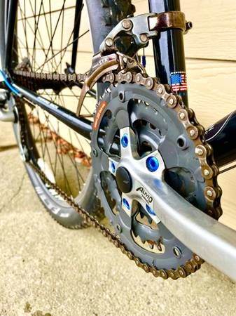 3x7 drivetrain w/new Micronew shifters and Shimano/Suntour derailleurs. New Ultracycle Cantilever brakes/pads have excellent stopping power. 26”x2” Bontrager tires have great stability/traction with low rolling resistance. New 42cm drop handlebars w/new wraps, new pedals, new seatpost and all new cables/housings.