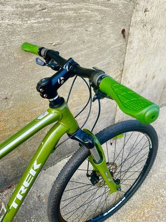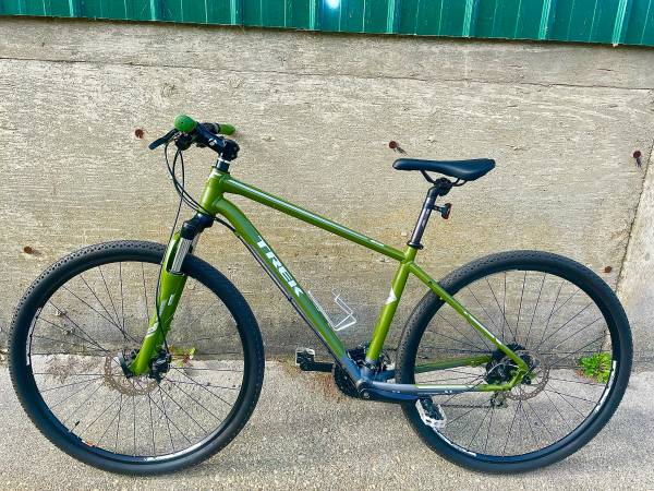 Trek Dual Sport 8.3 Gary Fisher edition, medium aluminum frame with Suntour suspension fork. Designed to be a flat-bar gravel bike/go-anywhere hybrid, capable of handling mild mtb trails as well as being good on paved roads. It’s been very well kept and has been thoroughly reconditioned, including some new parts. Everything is spotless and working just like new.