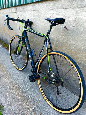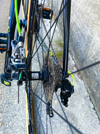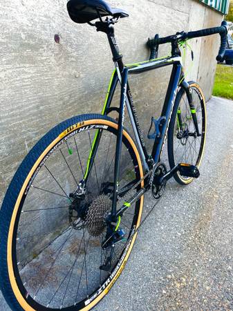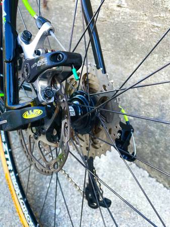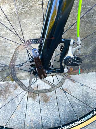 2x10 Sram drivetrain with Red shifters, new 11–36t cassette, new chain and a new 34T inner chain ring. The shifting is perfect and includes a nice low end for climbing steep Hills. Spyre dual piston, mechanical disc brakes, have fantastic stopping power in all weather conditions. New 700x32c WTB Ryder tires, new handlebar wraps and all new cables/housings.