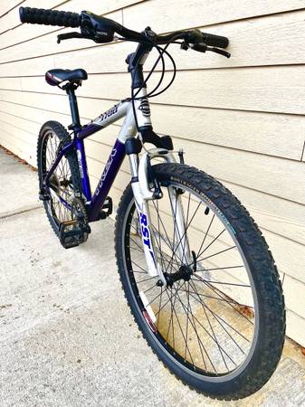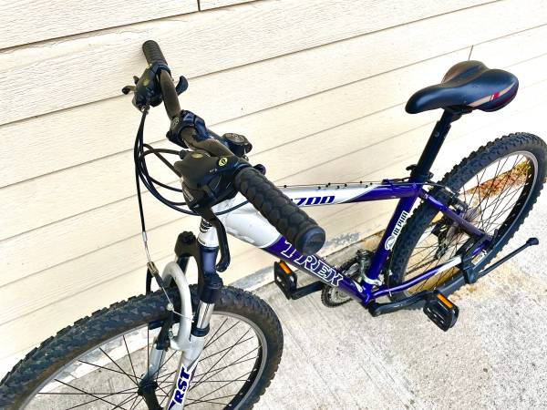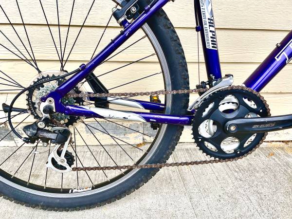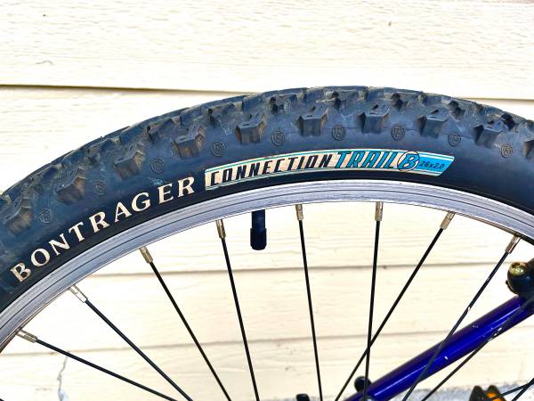 3X7 Shimano drivetrain with rapid fire shifters, powerful V brakes, 26“x2” Bontrager tires in excellent condition. Medium aluminum frame should be a good fit for riders 5’5”-5’8”.
