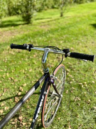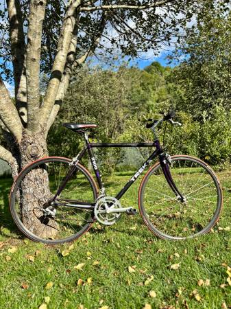 Refurbished, vintage Trek road bike with carbon/alloy frame circa 1991. This is a collection worthy bike or ready to ride as an extremely light and fast flat bar converted road bike. Some light wear but structurally sound and ready to go. Please inquire with questions or make an offer! Pedals not included, but I’ll add a set that will work if needed.