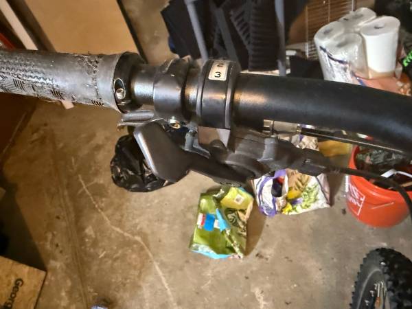 Used but in great working order. A few paint scuffs from normal use, no dents or cracks. Shifts clean, brakes are strong, and suspension feels good. Stored indoors and well-maintained.