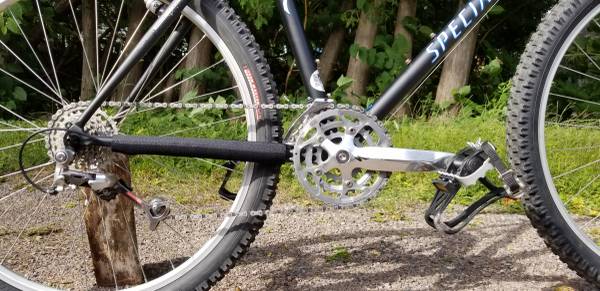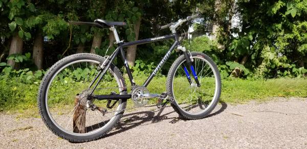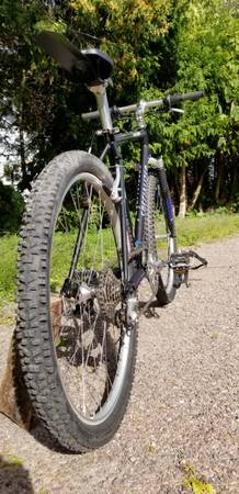Selling my Cr-Mo 1997 Specialized Rockhopper FS. For a vintage steel Rockhopper this particular bike is in excellent condition. Frame is nearly spotless with 1 or 2 small blemishes. Rock Shox Indy C's. Bought from original owner 3 years ago who said they rode it twice in the late 90's and it sat in their basement ever since. Both original tires still had all of the tire hairs. Selling because I am also guilty of letting this bike just sit most of the time.